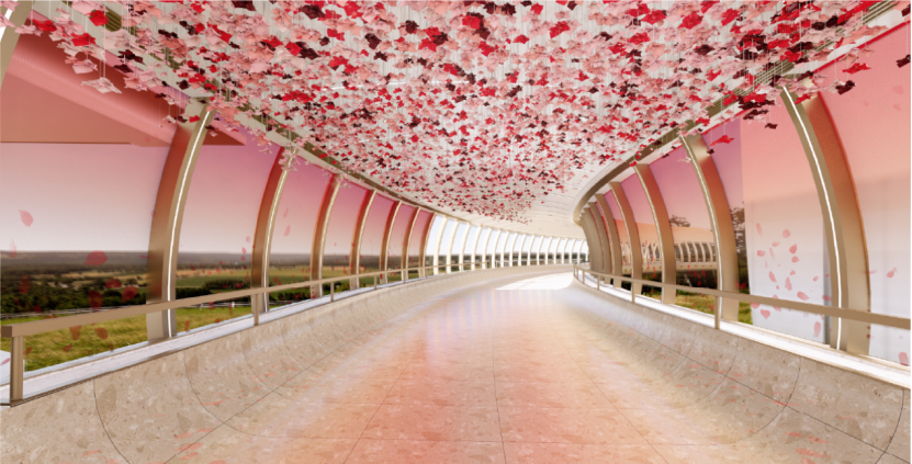 “时空之旅”“醉人花廊”为主题的两条艺术连廊,将三亚国际免税城旅游区A、B、C三栋建筑有机连接,呈现出北纬18°特有气候交替带来蓬勃生命力意境,将为中外游客带来独特的沉浸体验。